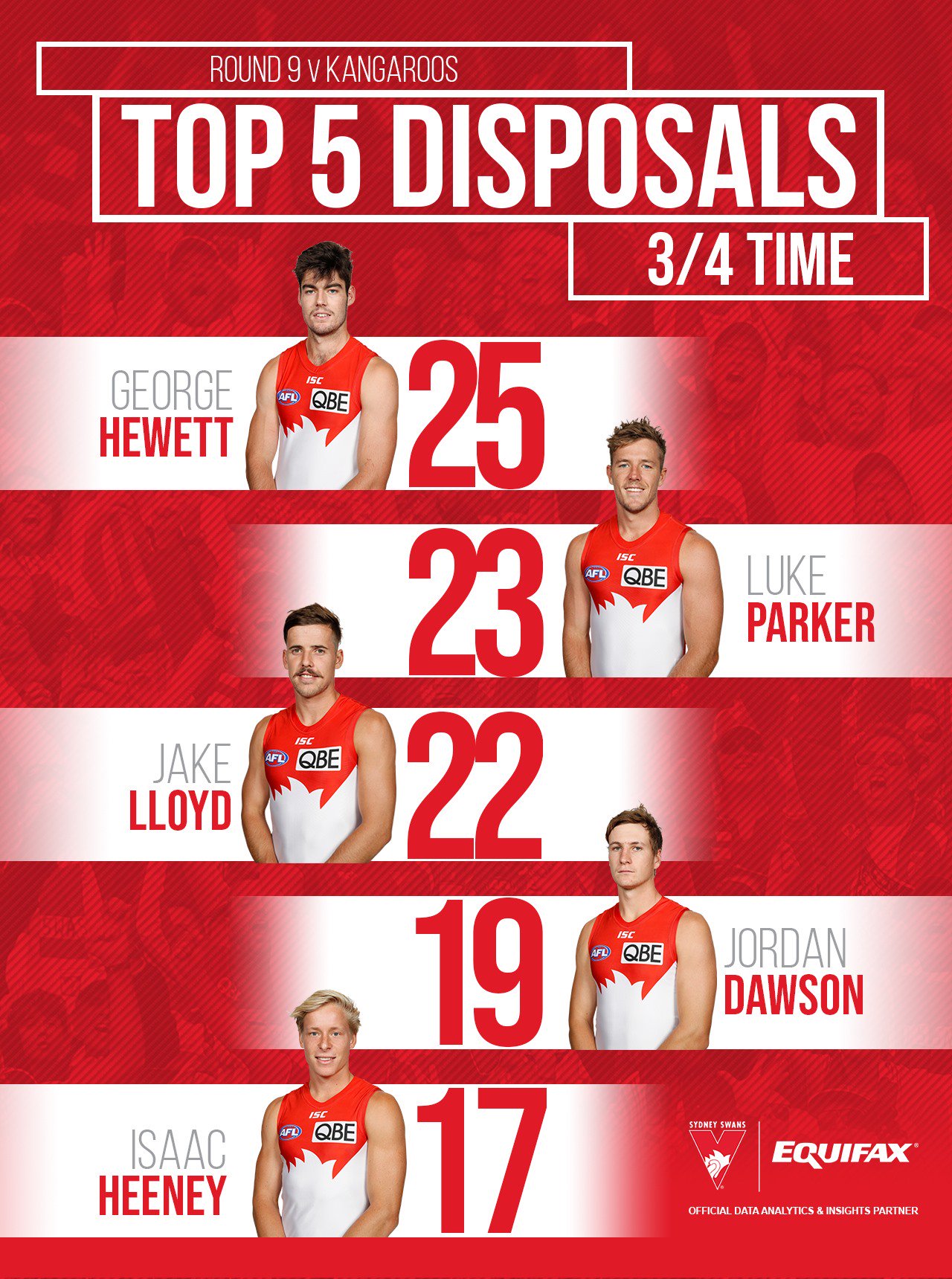 Sydney Swans On Twitter How Good Is George Hewett Going Tonight He S Leading The Way On The Equifaxau Stats Sheet At 3 4 Time